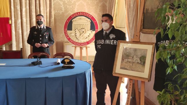 È l’immagine di Piazza Paolo Capasso con la Chiesa di San Matteo Apostolo sullo sfondo come si presentava a inizio ‘900, quella raffigurata nell’opera d’arte di Gennaro Villani nota con il nome “Paesaggio con chiesa” ritrovata e riconsegnata al Comune di Napoli. L’opera, pastello su carta delle dimensioni di 33x35 cm, era stata trafugata dagli uffici dell’allora sindaco di Napoli Rosa Russo Iervolino nel 2010 ed è stata riconsegnata questa mattina dopo il ritrovamento avvenuto grazie al lavoro del Nucleo TPC di Napoli le cui indagini sono state coordinate dalla Procura della Repubblica di Roma. Di fondamentale importanza per l'individuazione è stato l'ausilio della Banca Dati dei beni culturali illecitamente sottratti, gestita dal Comando Carabinieri Tutela Patrimonio Culturale, che ne ha confermato la provenienza illecita. Alla cerimonia, oltre al sindaco di Napoli Gaetano Manfredi, del dirigente dell'Area Cultura e Turismo, Massimo Pacifico e del comandante del Nucleo Carabinieri Tutela Patrimonio Culturale di Napoli, Tenente Massimiliano Croce erano presenti anche il primo cittadino ed il vicesindaco di Agerola, Tommaso Naclerio e Luca Mascolo.