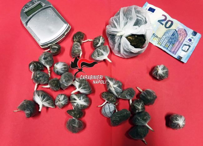 I Carabinieri della Stazione di Boscoreale hanno tratto in arresto Marco Navone, 36 anni, di Boscoreale, già noto alle forze dell'Ordine che nel corso di perquisizione nel suo domicilio in via Croce è stato trovato in possesso di 45 grammi di marijuana suddivisi in 29 confezioni, 28 grammi di marijuana contenuti in altra e unica busta, un bilancino di precisione e materiale per il confezionamento.