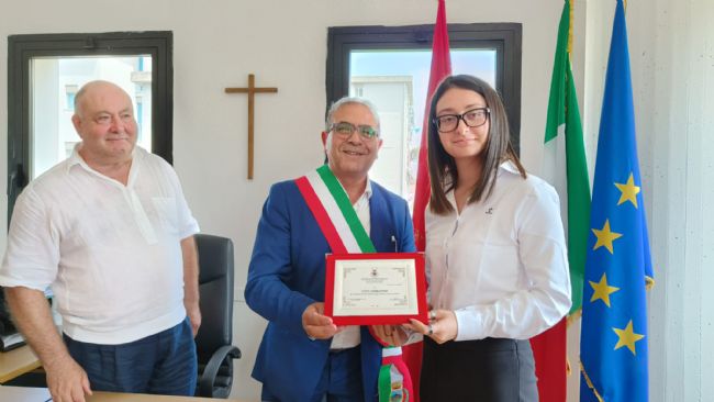 Presente all’iniziativa anche il professore Antonio Aiese, responsabile di plesso dell’IS Colombo. «Mi congratulo con questa amministrazione attenta ai giovani ed ai loro meriti. Complimenti a Sara e grazie per il suo percorso: il riconoscimento avuto è un regalo anche noi docenti».
