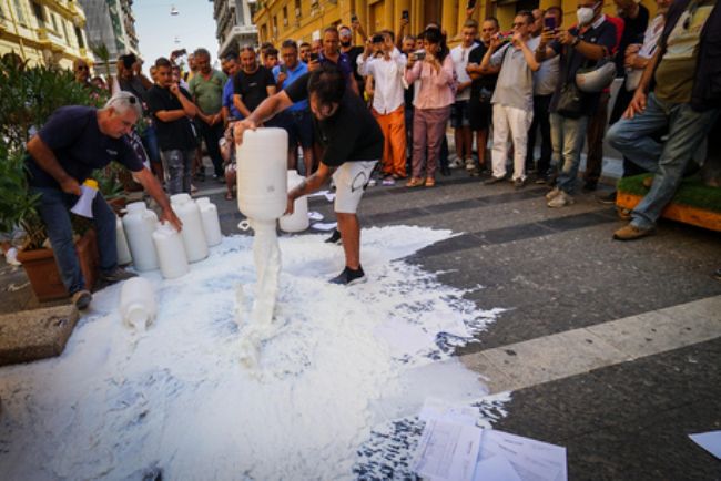 Decine di litri di latte di bufala sono stati versati davanti alla sede della Regione Campania da parte degli allevatori di bufale della provincia di Caserta, che non hanno ottenuto un incontro con i vertici della Regione per ridiscutere il piano su Brucellosi e Tubercolosi.