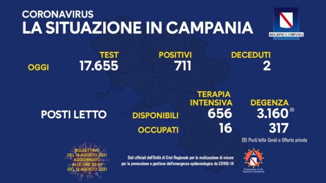 Il tasso di contagio resta sostanzialmente stabile (oggi 4,02% rispetto al 4,25 di ieri) anche se si registrano altri 711 positivi. In Campania, dal bollettino quotidiano sull'emergenza Covid, emerge che i posti occupati in terapia intensiva sono stabili (16 come ieri) ma aumentano ancora i ricoverati nei reparti ordinari.