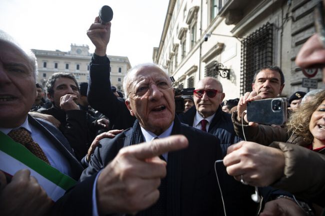 "Meloni? Senza soldi non si lavora. Stronza, lavori lei", è la replica del governatore alle parole della premier. De Luca, a Montecitorio assieme a due sindaci campani, si è fermato in Transatlantico a conversare con alcuni giornalisti, raccontando la manifestazione e lamentandosi per non essere stati ricevuti da nessuno nei ministeri. "Siamo arrivati davanti al Ministero della Coesione, dove sono degli stakanovisti: non c'era nessuno, Non c'era il ministro, non c'era un sottosegretario, non c'era un funzionario che stava giocando a tennis. Ci hanno spintonato, poi hanno detto che una delegazione poteva salire, ma sopra non c'era nessuno. Allora sono andato verso Palazzo Chigi, ma una barriera di polizia ci ha bloccato. Hanno detto che poteva passare solo il Presidente, e così sono andato io. Ma a Palazzo Chigi, non c'era Mantovano, non c'era nessuno. Ecco come trattano i sindaci della Campania. Sono 12 giorni che li avevamo avvisati che saremmo venuti". Tensioni durante il corteo quando alcuni sindaci provano a raggiungere palazzo Chigi.