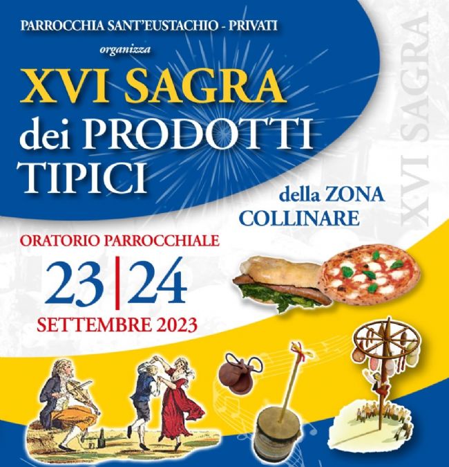 Al via la XVI Sagra dei prodotti tipici della zona collinare. Don Roberto e la comunità parrocchiale di Sant’Eustachio si apprestano a celebrare due serate all’insegna della musica e del buon cibo. L’evento è in programma per i giorni 23 e 24 settembre presso la Chiesa di Sant’Eustachio, in via Privati. Le serate saranno alietate da balli e canti di gruppo con la partecipazione dell’oratorio parrocchiale. Sabato 23 settembre alle ore 21:30 ci sarà il “Palo della Cuccagna”, il gioco tradizionale dove i partecipanti devono cercare di prendere dei premi, di norma generi alimentari, posti in cima ad un palo. Un evento da non perdere per cittadini e turisti.