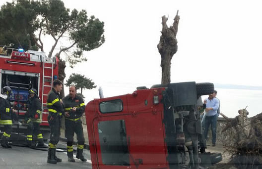 La statale sorrentina continua ad essere teatro di incidenti. Il quinto in ordine di tempo negli ultimi venti giorni ha coinvolto una jeep dei vigili del fuoco, che nel pomeriggio ha perso aderenza con il manto stradale ribaltandosi e schiantandosi contro un albero. La spettacolarità dell'incidente, per fortuna, non è coincisa con gravi danni per i passeggeri del veicolo. Il conducente e un altro vigile del fuoco, infatti, hanno subito lievi ferite cavandosela con pochi giorni di prognosi. Il traffico ha subito forti rallentamenti per oltre due ore ma, una volta rimosso l'automezzo, la circolazione è ripresa regolarmente.