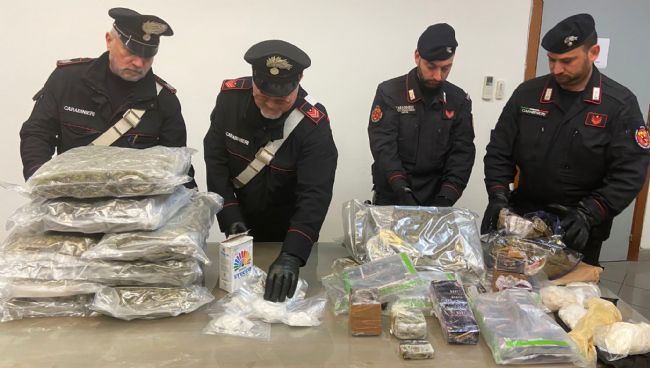Si parte dall’arresto di Maurizio e Francesco Di Martino, padre e figlio nella cui abitazione i militari hanno rinvenuto 121 panetti di hashish, oltre 12 chili di stupefacente con il logo “Narcos” impresso sulle confezioni. E ancora più di due chili di marijuana, 350 dosi di cocaina e 5 pietre della stessa sostanza ma ancora da tagliare per complessivi 590 grammi. Ancora cocaina, già pronta per l’uso: 2 gli involucri per totali 552 grammi.