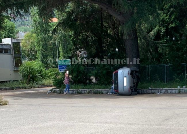 Castellammare - Auto si ribalta nel parcheggio delle Nuove Terme, illesa la conducente