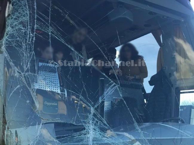 Stavano raggiungendo Venezia per la consueta gita scolastica di metà aprile quando sono stati tamponati, probabilmente in fase di sorpasso. L'autista dell'autobus è riuscito a fermare il mezzo e a raggiungere la prima piazzola di sosta utile per fare la conta dei danni. E' stata colpita parte della portiera destra e gran parte del vetro anteriore ma fortunatamente non ci sono stati feriti. E' questa l'incredibile vicissitudine per tre classi del liceo Severi di Castellammare di Stabia che ieri sono stati protagonisti in negativo di un piccolo sinistro in autostrada. Inevitabilmente, il loro viaggio ha subito dei rallentamenti anche perchè è stato necessario cambiare l'autobus che era in parte danneggiato. Tuttavia, i giovani stabiesi e i loro professori hanno comunque deciso di raggiungere Venezia dove, anche se con qualche ora in meno, daranno inizio alla propria gita scolastica. In un secondo momento si tenterà di ricostruire l'esatta dinamica del sinistro.