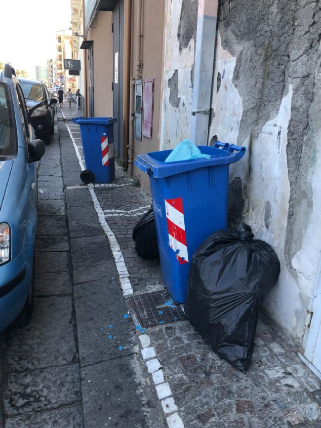 L’ordinanza dell’assessore all'Ambiente, Gianpaolo Scafarto che vieta di tenere i bidoni dell’immondizia fuori dei palazzi ed esercizi commerciali viene puntualmente violata. E' quello che accade al centro città, soprattutto in via Bixio, la strada adiacente all’ex Fascio, e lungo tutto corso Garibaldi. Spesso i raccoglitori bloccano il transito anche ai pedoni che sono costretti a transitare lungo la carreggiata con il pericolo delle auto a pochi metri.