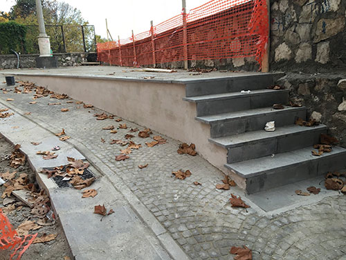 Il piccolo belvedere è stato completamente rimesso a nuovo, il marciapiede è pronto per l’ultimazione della pavimentazione e si stanno iniziando gli scavi per la creazione di un secondo belvedere.