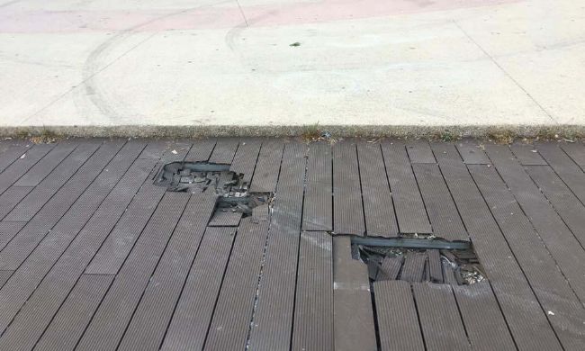 Danni alla pavimentazione in listoni in villa comunale. Alcuni cittadini hanno immortalato due grosse buche e pubblicato le foto sui social commentando così: «Questa mattina sul lungomare lato cassa armonica. Si vedono ancora i segni degli pneumatici del macchinario con le spazzole rotanti che è passato sulla passerella provocando molti buchi. La ditta che ha provocato il danno deve riparare urgentemente, è molto pericoloso per chi cammina».