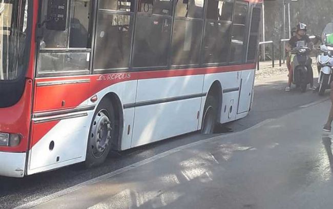 Momenti di puro caos in Via Acton che sembrano non aver avuto fine. Questo pomeriggio un bus dell'Eav è finito con la ruota all'interno di una voragine, venutasi improvvisamente a formare mentre il veicolo era in transito. Per più di due ore vi è rimasto incastrato e successivamemnte sul posto sono giunti i vigili del fuoco con la gru per rimuovere il mezzo pesante dal fosso.
