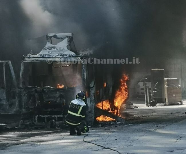 Camion in fiamme questa mattina sulla strada Panoramica a Castellammare di Stabia. Per fortuna non si sono registrati feriti ma solo tanta paura per l’autista del mezzo e per un automobilista in transito nel momento in cui sono divampate le fiamme.