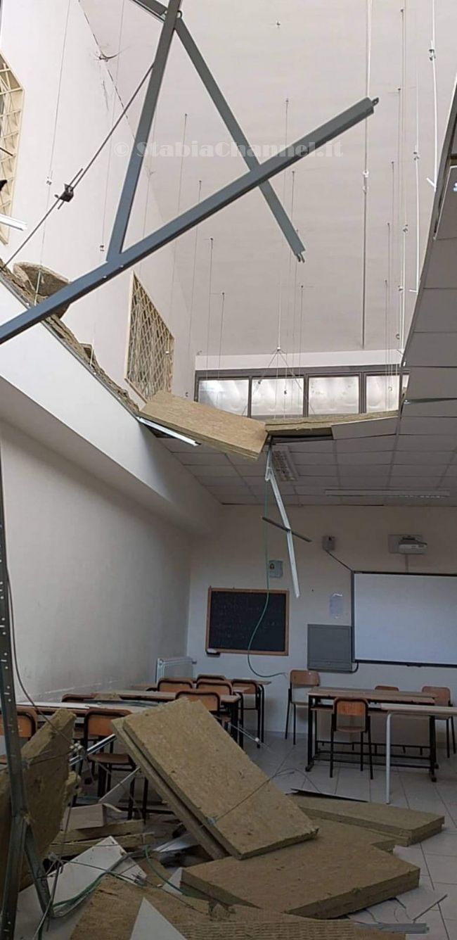 Con molta probabilità a provocare il crollo è stato il forte vento che ha soffiato violentemente sul territorio stabiese e non solo. Ora però ci sarà da riparare ai danni e trovare una collocazione idonea agli alunni che questa mattina non hanno potuto effettuare le regolari lezioni nella loro aula.