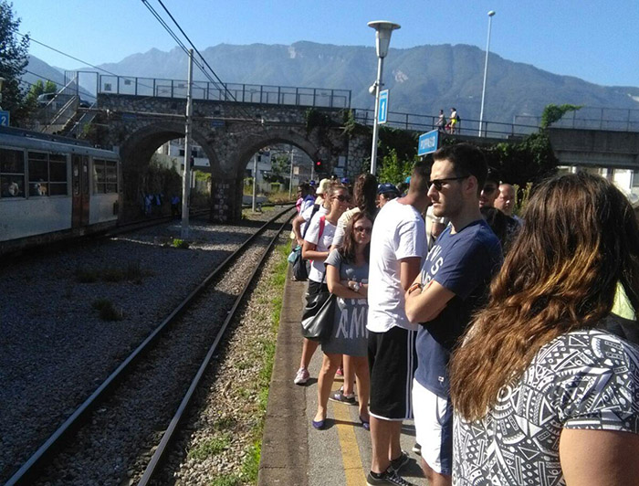 La Circumvesuviana continua a creare disagi ai pendolari. Stamattina il treno delle 9.16, in partenza da Napoli con direzione Sorrento, ha subito un guasto al motore, costringendo i passeggeri a scendere nella stazione di Pioppaino e attendere il convoglio successivo. L'attesa non avrebbe dovuto oltrepassare i 6 minuti, ma si è prolungata per oltre un'ora a causa dei già noti problemi relativi al trasporto pubblico locale che hanno causato la riduzione delle corse e svariati ulteriori inconvenienti. A segnalare l'assurdo disagio è stato il collega Domenico Ascione, anch'egli vittima di un incomodo che “puntualmente” affligge i pendolari. Il governatore della Regione Campania Vincenzo De Luca poco meno di un mese fa aveva annunciato che a breve sarebbero stati messi a disposizione dell'Eav 35 nuovi treni, di cui i primi 12 entro l'estate. La situazione attuale impone un intervento urgente per evitare inconvenienti sia per chi è costretto a recarsi al lavoro sfruttando i mezzi pubblici sia per i numerosi turisti che in estate affollano la penisola sorrentina.