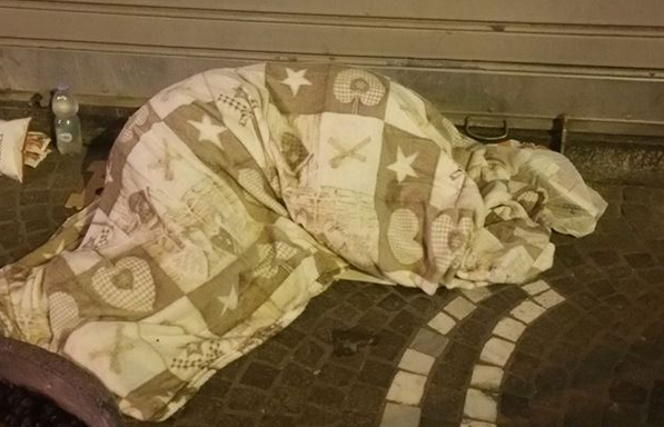 Christian dormiva da una settimana appollaiato e infagottato sul marciapiede di fronte alla scuola Stabia. I volontari lo hanno portato al Pronto Soccorso del San Leonardo e poi alla Caritas Diocesana, dove avrà cibo, vestiti e un letto per dormire.