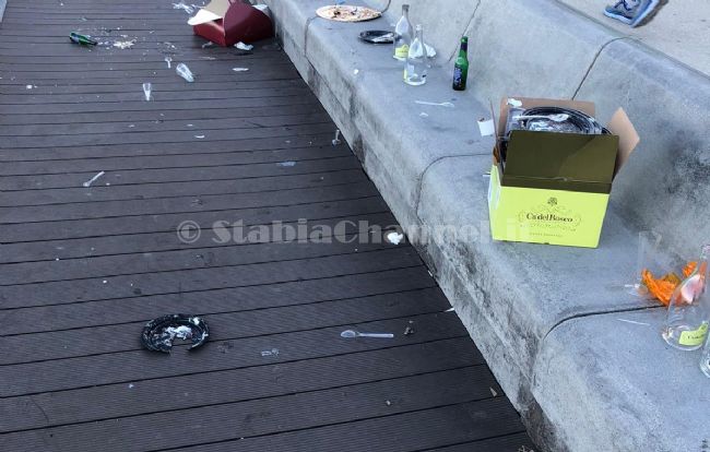 E’ quanto accade in villa comunale a Castellammare di Stabia dove, sulle sedute rivolte verso l’arenile, questa mattina lo scempio era sotto gli occhi di tutti. Bottiglie di spumante, piatti di plastica con ancora resti di torta, confezioni di dolci, bicchieri e tanti altri rifiuti. I resti di un festino consumato ieri sera sul lungomare stabiese svolto da persone incivili e senza rispetto per il luogo in cui si trovavano.