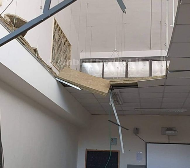 Crollo del soffitto nella scuola Viviani di Castellammare di Stabia, la causa potrebbe essere stata il vento che ha soffiato forte nell'ultima settimana. La dirigenza scolastica, in compagnia dei tecnici della Città Metropolitana di Napoli, ha già effettuato un sopralluogo nell'aula incriminata e ha identificato proprio nel maltempo degli ultimi giorni la motivazione che ha portato alla caduta del controsoffitto (realizzato circa tre anni fa). Tuttavia l'aula in questione era già chiusa da diverso tempo considerato che, con la perturbazione che c'è stata quasi un mese fa, erano stati evidenziati dei segni di cedimento. Di conseguenza da oltre 20 giorni gli alunni non utilizzavano più la classe, e di conseguenza anche quella sottostante, proprio per eliminare qualsiasi tipo di rischio.