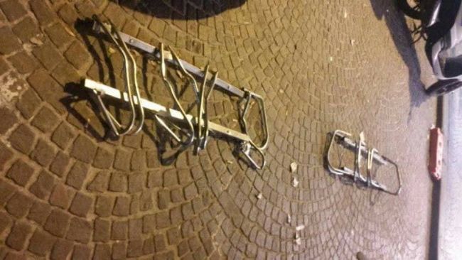 L'ennesima sconfitta per la città di Castellammare, la quale non si è dimostrata in parte pronta al cambiamento. Le rastrelliere di ferro, posizionate in piazza Umberto I accanto a un noto bar della Cassa Armonica allo scopo di favorire la sosta alle bici, sono state vandalizzate e danneggiate a distanza di un mese dall'installazione. Probabilmente un auto o un motorino, noncurante della loro presenza, ha poggiato le ruote al di sopra di esse e con il peso del veicolo queste avrebbero ceduto.