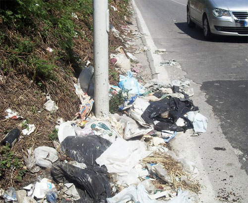 una situazione di intollerabile degrado di via Passeggiata archeologica derivante dalla presenza di una notevole quantità di rifiuti ai lati del manto stradale e presso i marciapiedi. In particolare abbiamo fotografato cumuli di immondizia ai lati del manto stradale in direzione della villa archeologica denominata "San Marco" (vd. Foto in allegato). Segnaliamo inoltre cumuli di vestiario abbandonati nei pressi dei cassoni per la raccolta di abbigliamento usato. Essendo questa l'unica strada percorribile dai turisti in visita alle ville archeologiche: