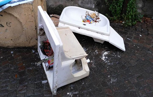 La Villa Gabola continua ad essere umiliata dall'inciviltà di alcuni cittadini incuranti del decoro urbano e delle norme basilari dell'educazione civica.. Vittima in passato di numerosi atti vandalici operati da teppisti che hanno distrutto finestre, porte e servizi igienici, imbrattando le mura e depositando al suo interno rifiuti di ogni genere, la splendida villa ottocentesca che la signora Baker trasformò in una pensione per accogliere turisti che si recavano a Castellammare per le cure termali è circondata da un parco naturale, definito il polmone verde della città per la sua collocazione nel cuore del rione San Marco e per l'armonia che separa quel luogo dal traffico circostante. Non solo al suo interno, però, imperversa il degrado e la pace ha lasciato il posto alla desolazione, ma anche il marciapiede che costeggia il parco è divenuto un ignobile ricettacolo di cartacce e rifiuti, fotografia desolante di una città che continua ad infliggersi cruente pugnalate tra l'indifferenza generale. Nella giornata di ieri, è stato persino abbandonato nei pressi del cancello esterno un lavandino completamente distrutto, lasciato lì in “bella mostra” ad intralciare il percorso e la visuale, emblema del degrado sociale che ha investito una città che fatica sempre più a destarsi dal torpore, in attesa che il futuro primo cittadino si metta all'opera per provare ad invertire finalmente la rotta.