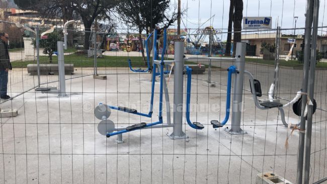 Ci sono anche attrezzi ginnici tra gli arredi urbani che in queste ore operai incaricati dal comune stanno posizionando in villa comunale.