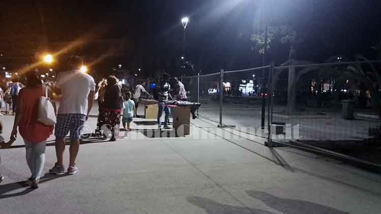 Qualcuno, più furbo, capisce che i vigili sono solo due, fermi lì a guardia di quel tratto. Ed allora si sposta sul tratto di villa appena inaugurato. Si posiziona nei pressi del landmark ed inizia la propria vendita abusiva. Colpevoli, in questi casi, anche la stessa gente che ne acquista i prodotti contraffatti.