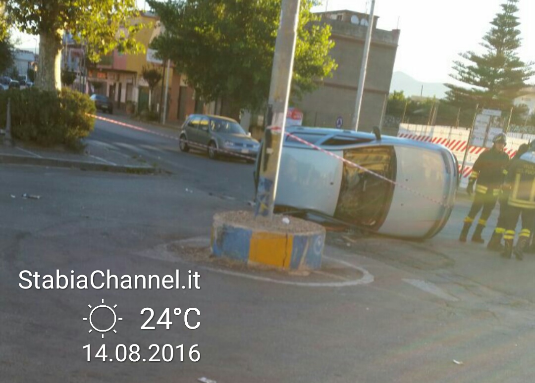 Rocambolesco incidente questa mattina all'alba a Castellammare di Stabia. Una Fiat Punto si è ribaltata rimanendo poi ferma adagiata su un fianco.