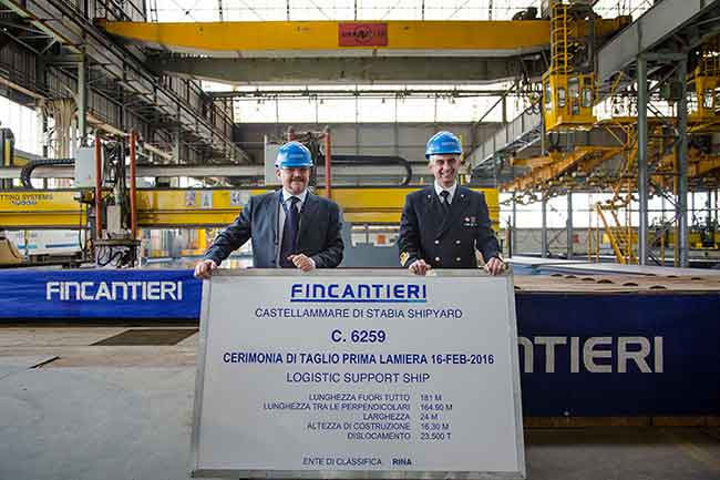 Si è svolta oggi, presso lo stabilimento Fincantieri di Castellammare di Stabia, la cerimonia per il taglio della prima lamiera del troncone di prua dell’unità di supporto logistico LSS. Prende avvio ufficialmente quindi la costruzione della prima unità prevista nell’ambito del piano di rinnovamento della flotta della Marina Militare Italiana commissionato a Fincantieri.