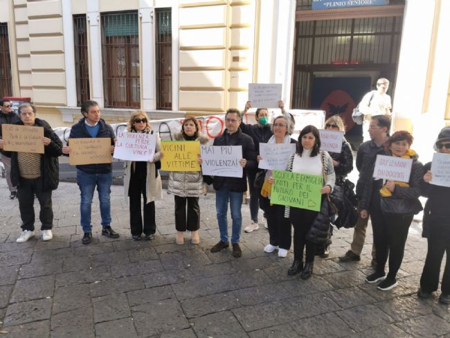 Si è tenuto sabato mattina, all’esterno del liceo ‘Plinio Seniore’ di Castellammare di Stabia, un flash mob a sostegno di Lucia Celotto, la professoressa che sarebbe stata aggredita nella scuola dalla mamma di un'alunna a causa, pare, di un voto basso. “Presenza doverosa, questa è una battaglia di civiltà che portiamo avanti da tempo e che continueremo a fare. E’ ora di dire basta alla violenza nelle scuole, di dire basta ai genitori che aggrediscono insegnanti, che fanno solo del male ai propri figli.  Andremo fino in fondo a questa vicenda e ci aspettiamo che Comune e Direzione scolastica regionale si costituiscano parte civile. Chiediamo che i protagonisti siano puniti a dovere”, ha detto il deputato di Alleanza Verdi-Sinistra, Francesco Emilio Borrelli, che ha partecipato alla manifestazione e che nei giorni scorsi aveva fatto visita all’insegnante e presentato un’interrogazione al ministro all’Istruzione Valditara.