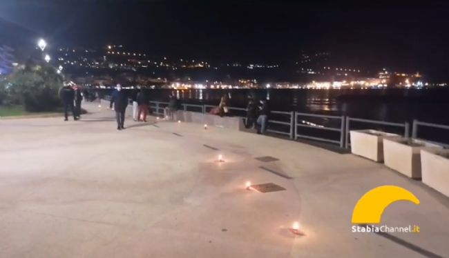 Centinaia di ceri accesi che hanno tristemente illuminato la villa comunale, dall’hotel Miramare alla Cassa Armonica. Il flash mob organizzato ieri sera dai commercianti di Castellammare di Stabia ha toccato l’animo ed il cuore di tutti gli stabiesi e non solo.