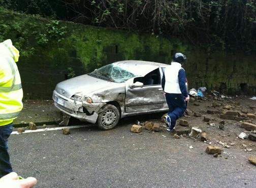 Pochi minuti fa una grossa frana si è verificata sulla strada statale per Gragnano, il tratto di strada che collega Castellammare di Stabia con la città della pasta. Purtroppo si registra anche un ferito. Si tratta di un uomo che, al momento del cedimento del terreno, percorreva quel tratto di strada con la sua Fiat Punto grigia. Una grossa quantità di terreno e pietre ha letteralmente coperto l'auto, le cui lamiere hanno ceduto sotto il peso dei massi. L'uomo è rimasto ferito alla testa. Soccorso dai passanti, è stato immediatamente accompagnato al pronto soccorso dell'ospedale San Leonardo, dove gli sono stati applicati circa 20 punti di sutura. E' ora ricoverato presso il nosocomio stabiese dove i medici stanno effettuato ulteriori accertamenti.