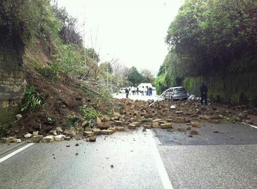 Non è la prima volta che la collina che costeggia quel tratto di strada cede, proprio in concomitanza con le forti piogge. Prima nel 2009 e poi ancora nel 2010, sempre nello stesso punto, si verificarono diverse frane. Poi, nel 2011, furono effettuati i lavori di messa in sicurezza della collinetta, con la realizzazione di un muro di contenimento. Questa volta, però, a cedere è stato il terreno dell'altra parte della strada.