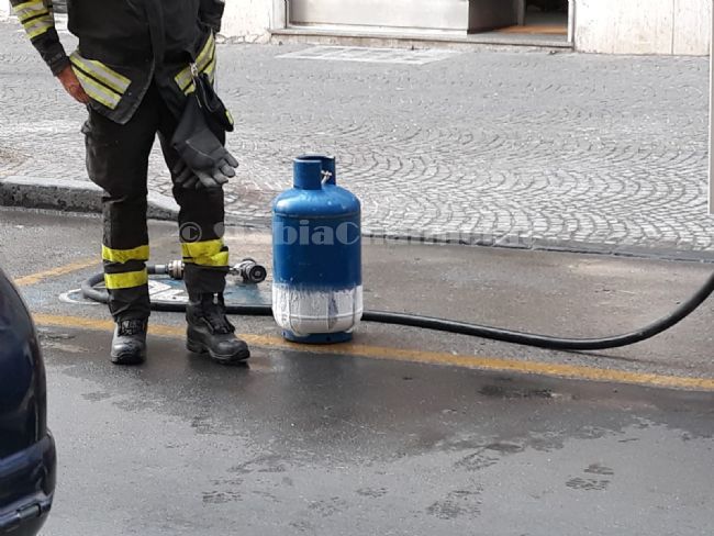 Un intenso odore di gas accompagnato da un sibilo. Poi l'esterno della bombola che si ricopre di condensa. Sono questi i segnali che hanno diffuso panico e paura questo pomeriggio in via Tavernola a Castellammare di Stabia. Immediato è scattato l'allarme tra i residenti e la chiamata ai vigili del fuoco. Sul posto anche due volanti della polizia ed un'auto della municipale. In pochi minuti è stata individuata la bombola e messa in sicurezza. La bombola era posizionata all'esterno di una abitazione privata e, a quanto pare, si era staccato il tubo che la collegava all'impianto interno della casa. In pochi minuti il gas si è disperso nell'aria, accompagnato dal sibilo del gas che fuorisliusciva. La differenza di temperatura e di pressione ha generato una condensa che ha ricoperto per metà lo strato esterno della bombola stessa. In ogni caso, stando al racconto dei vigili del fuoco, non vi era alcun pericolo di scoppio della bombola, anche se la paura che potesse generarsi un'esplosione ha gettato nel panico i residenti della zona.