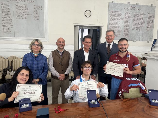 Consegnate le pergamene a: Salvatore Maresca, campione delle Fiamme oro, primo nella specialità anelli della World Challenge Cup 2023 di ginnastica artistica in Francia;  Angela Procida, 23 anni, atleta delle Fiamme Oro, nuotatrice e paraciclista italiana, Argento nei 100 dorso con record italiano assoluto al Campionato del mondo di Manchester e Pass Parigi 2024; Raniero De Fusco, classe 2007, tesserato per la Nuova Polisportiva Stabia e Campione Europeo 2023 con la Nazionale Italiana con Sindrome di Down a soli 15 anni, il più giovane di sempre.