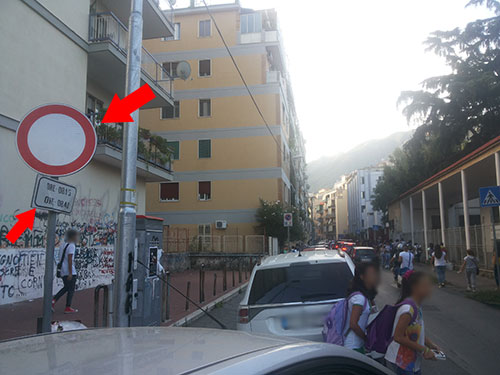 Il divieto di accesso c’è da anni, ma tranne che nei primi giorni in cui fu istituito, non è mai stato rispettato. Siamo in via D’Annunzio, strada in cui insistono diversi istituti scolastici di I e II grado. Migliaia di ragazzi ogni mattina nei minuti che precedono l’ingresso in aula sostano sui marciapiedi e, considerato l’elevatissimo numero di studenti, occupano anche gran parte della carreggiata. Il Comune decise quindi di inibire la circolazione delle auto in questo tratto di strada dalle 8.15 alle 8.40, anche per preservare la sicurezza degli stessi studenti. Purtroppo, però, nessuno rispetta questo divieto, né c’è alcun vigile urbano a farlo rispettare o a multare i trasgressori. Nemmeno nei primissimi giorni di scuola, come questa mattina. Non solo. In via D’Annunzio ci sono diverse telecamere di videosorveglianza, e non ci risulta che vengano utilizzate per multare chi non rispetta il divieto di accesso. La conseguenza è quella che si vede nella foto: traffico in tilt, ragazzi costretti pericolosamente a districarsi tra le auto, motorini che sfrecciano zigzagando tra auto e pedoni. Insomma, un vero e proprio caos.