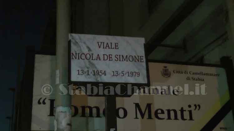 Alle ore 20:30 è andata in scena, all'ingresso dello stadio, la cerimonia ufficiale di inaugurazione del nuovo viale, alla quale hanno preso parte,oltre al Signor Mercatelli, anche il direttore generale gialloblu Clemente Filippi, il direttore responsabile del settore giovanile Alberico Turi, i familiari di De Simone e alcuni rappresentanti della Curva Sud che hanno avuto l'onore di scoprire la targa incisa col nome, la data di nascita e quella di morte del Campione stabiese.
