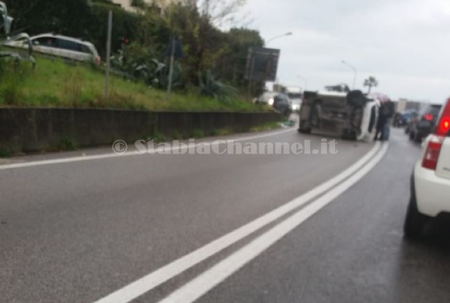 Incidente stradale questa mattina sulla strada statale ss145 Sorrentina a Castellammare di Stabia. A pochi metri dall’ingresso della galleria Privati, un vettura si è ribaltata sul lato, rimanendo così bloccata al centro della carreggiata. Per fortuna non si sono registrati feriti gravi, né altri veicoli sono stati interessati dal sinistro.