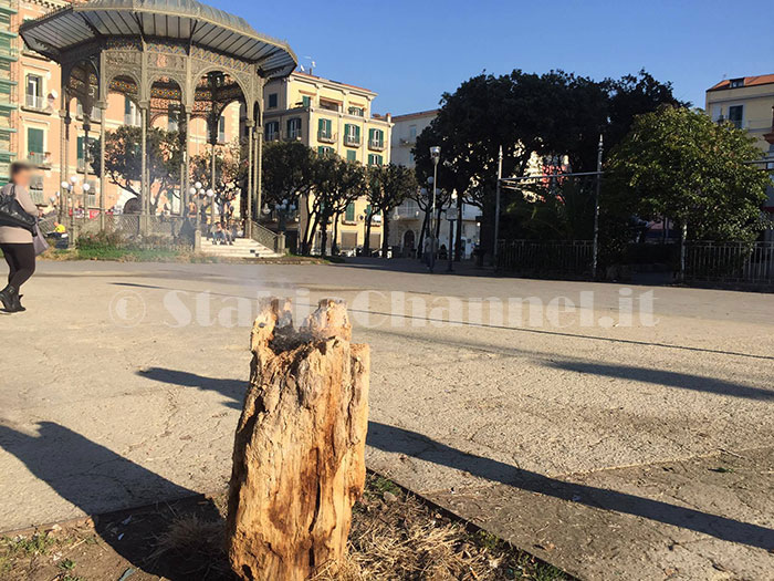 Ma, come spesso si dice, “al peggio non c’è mai fine”. Ebbene, per riscaldarsi un po’, qualcuno ha pensato di utilizzare come braciere il tronco di un albero tagliato. Il tutto a pochi passi dalla cassarmonica, ma anche dalle telecamere di videosorveglianza.