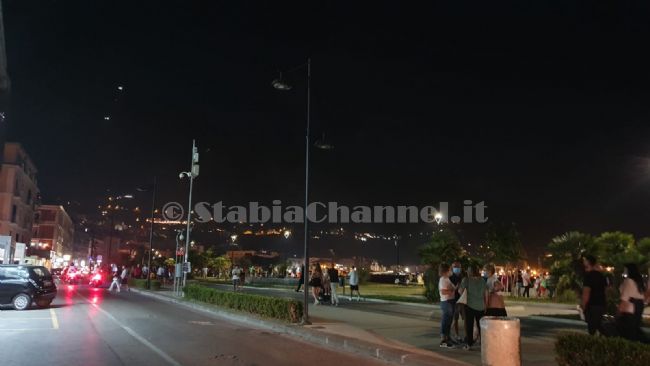 Corso Garibaldi al buio questa sera a Castellammare di Stabia. I lampioni stradali, infatti, sono rimasti spenti lasciando completamente al buoi sia la strada che parte della Villa Comunale.