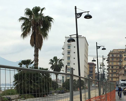 Ultimi aggiornamenti sui lavori per il re-styling della Villa Comunale di Castellammare. Da alcuni giorni è iniziata l’installazione dei pali che illumineranno il lungomare. Provvisti di lampadine al led e decorati con lo stemma della città, rappresentano l’elemento mancante che finalmente fa sperare nella prossima riapertura, almeno di quella parte del lungomare a ridosso della carreggiata. Venerdi’ 11 dicembre, infatti, potrebbe essere il giorno definitivo per la consegna di questa prima parte completa della Villa.