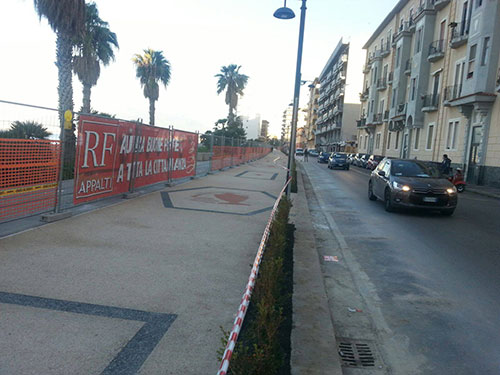 Questa mattina gli operai della ditta RF Appalti – ditta a cui sono stati affidati i lavori solo da qualche mese - hanno provveduto ad arretrare le transenne che delimitavano il cantiere. Ora, a separare la villa comunale dalla strada vi è un semplice nastro delimitatorio che verrà rimosso proprio domani.