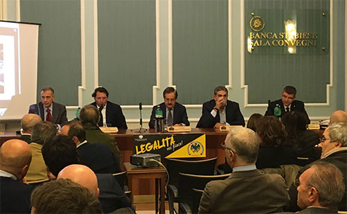 “Legalità, mi piace”. Questo il titolo dato alla mobilitazione nazionale di Confcommercio che ha visto ieri in tutta Italia lo svolgimento di importanti convegni sul tema della legalità in ogni sua forma.  A Castellammare di Stabia, se ne è discusso alla sala conferenze della Banca Stabiese in un dibattito organizzato dall’Ascom che ha visto la partecipazione del procuratore generale della Corte d’Appello di Napoli, Luigi Riello; il Questore di Napoli dott. Guido Marino e del comandante della Capitaneria di porto di Castellammare di Stabia, Guglielmo Cassone.