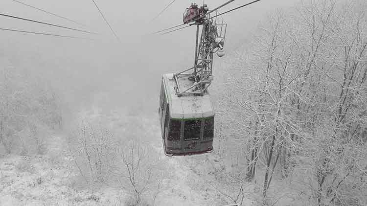 Le vette del Vesuvio e di Monte Faito imbiancate. E’ il risultato del brusco calo delle temperature delle ultime ore e delle fitta pioggia che da stamattina sta caratterizzando tutto il territorio a sud di Napoli. E così, per la prima volta in questo anomalo inverno, le cime del vulcano e della montagna che domina sul golfo stabiese sono state coperte di neve. Particolarmente suggestiva è la foto che il sig. Domenico Donnarumma ha pubblicato sui social: la “panarella” che viaggia in uno scenario atipico per le nostre zone. Neve che cade dall’alto, alberi e suolo imbiancati. Testimonianza anche del fatto che i lavori di manutenzione della funivia del Faito stanno proseguendo per centrare l’obiettivo di renderla nuovamente operativa entro il prossimo 25 aprile, così come annunciato dai vertici EAV qualche settimana fa.
