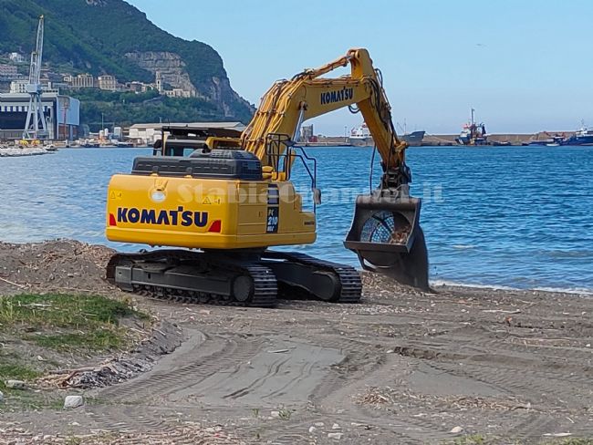 Al via la pulizia dell’arenile stabiese. Questa mattina sul lungomare gli escavatori hanno ripulito la sabbia da rifiuti e dai residui vari trasportati dalle correnti, durante i periodi di pioggia. Un primo passo verso la pulizia e la balneabilità del tratto antistante la villa comunale. «Verso la normalità» è l’hashtag lanciato sui social dal sindaco Gaetano Cimmino. E' tuttora in vigore il divieto di balneazione, ma i dati resi noti dall’Arpac lo scorso 29 aprile sono di buon auspicio: le analisi effettuate il 26 aprile nel tratto di mare antistante la villa comunale hanno, infatti, rivelato una presenza di batteri ampiamente sotto la soglia massima consentita.