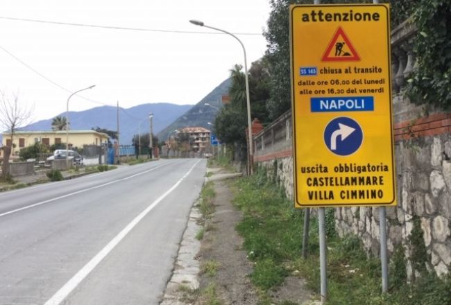 Per l’esecuzione degli interventi, come detto, fino al prossimo 9 aprile è attiva la chiusura al traffico della SS145 “Sorrentina”, in entrambi i sensi di marcia, tra il km 3,600 (svincolo di Castellammare Ospedale) ed il km 9,700 (svincolo di Castellammare Villa Cimmino), con deviazione del traffico veicolare sulla viabilità locale (comprendente anche la ex SS145 ‘Sorrentina’ ed ex SS366 ‘Agerolina’).