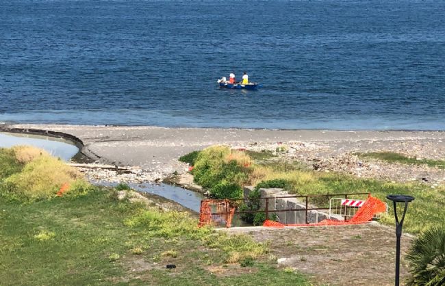 Pescatori in azione a due passi dal rivo Cannetiello? È quanto appare nella foto allegata: due pescatori a bordo di una piccola barca sono appena "salpati" e già hanno gettato in acqua la rete per fare la loro battuta di pesca. La speranza è che non sia proprio così perché forse i due pescatori non si rendono conto di essere proprio dove vengono sversate le acque reflue dal rivo Cannetiello. Uno dei rivi che sversa continuamente liquami in mare, che convoglia tutte le acque reflue delle abitazioni non allacciate alla rete fognaria. Si parla di scarichi che giungono dai comuni dei monti Lattari attraverso il torrente Vernotico. Insomma una delle cause principali dell'inquinamento dello specchio d'acqua del litorale stabiese sul tratto della villa comunale e del porto. Ed allora il mare in quel tratto non è balneabile (seppure in tanti nei giorni di caldo afoso fanno il bagno sprezzanti del divieto) e speriamo che i pescatori evitino almeno di "catturare" nella loro rete pesci, che poi venderanno al pubblico, proprio in corrispondenza del rivo Cannetiello.