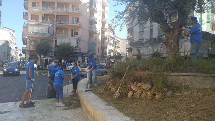 Il decoro della città passa ancora una volta attraverso il lavoro encomiabile dei volontari. I ragazzi dell'associazione “Il Castello e il Mare” sono intervenuti stamattina a Piazza Spartaco per ripulire l'aiuola che domina l'ampia area, luogo nevralgico del centro cittadino. Muniti di tagliaerba, scope e guanti, i volontari hanno ripulito le strade e attuato un'accurata opera di scerbatura dell'aiuola, estirpando le erbacce e potando le piantine cresciute a dismisura negli ultimi tempi. L'apporto del volontariato in questi anni ha sopperito alle lacune delle recenti amministrazioni comunali che, fra i tanti problemi che attanagliano Castellammare, hanno dimenticato di aver cura della quotidianità, lasciando spesso la città in balia del disordine e del degrado.
