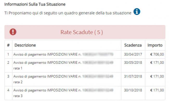 In pratica l’anomalia consiste in questo. Ogni anno i cittadini ricevono a casa, relativamente al pagamento della tassa su rifiuti solidi urbani, 5 bollettini: uno con l’importo totale del tributo e 4, invece, con la suddivisione del totale da pagare in altrettante rate dilazionate nel tempo. Ognuno dei 5 bollettini è caratterizzato da un numero univo, il codice di pagamento. Ebbene, chi ha optato per pagare in un’unica soluzione, entrando nel portale, si vedrà come da pagare i restanti 4 bollettini. Viceversa, chi ha pagato la tassa sui rifiuti in 4 rate, nel portale vedrà come insoluto il bollettino corrispondente all’importo totale. Insomma, per il portale del contribuente gli stabiesi devono pagare due volte la tassa sui rifiuti per essere in regola. E’ il caso mostrato nell’immagine sopra dove si nota come, per il 2017, il contribuente dovrebbe pagare un importo di 706 euro quando, invece, ha già pagato i 4 bollettini dilazionati. Per il 2018, invece, risultano da pagare 4 bollettini di pari importo quando, invece, il contribuente ha già pagato la tassa in un’unica soluzione.
