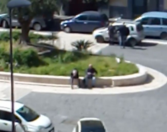 Panda fermata ad un posto di blocco. Uomo e donna in manette.