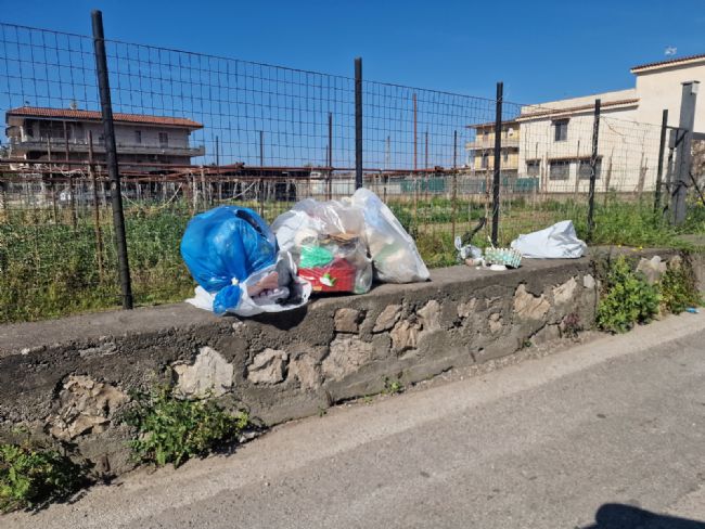 Rifiuti abbandonati in via Schito. Da oltre venti giorni, come segnalato alla nostra redazione, diversi sacchi vengono lasciati sul muretto che costeggia la strada, trasformando l’area in un punto di accumulo incontrollato.